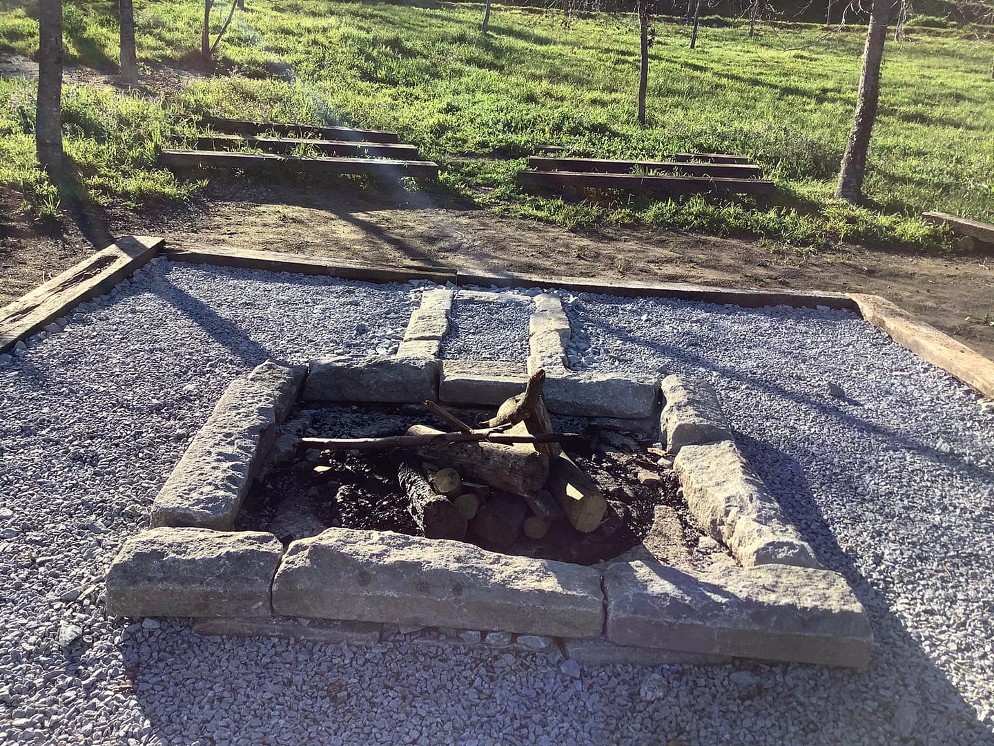 Infraestruturas: bancas, chuveiros interiores, casas de banho, cozinha partilhada interior, campo de futebol, espaço para fogo de conselho, arena central, capela exterior e bateria de chuveiros exteriores.